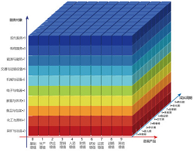 Y軸代表十縱咨詢服務對象:采礦與冶金行業、化工與原料行業、食品 與包裝行業、家居與休閑行業、電子與電器行業、機械與設備行業、交 通與運輸設備行業、能源與建筑行業、傳統服務業、現代服務業十個大行業。
